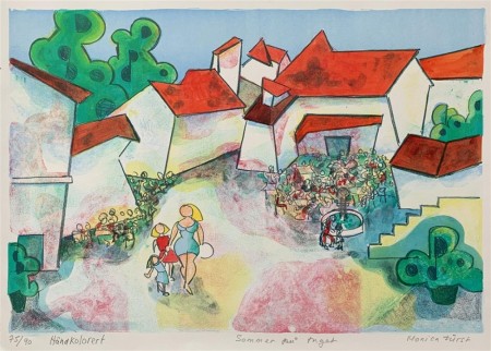 Monica er kjent for sine frodige kvinneskikkelser i sprakende farger. Hun har utdannelse fra Oslo tegne- og maleskole og Académie Francois Villard i Paris.Hun har hatt en rekke separatutstillinger og også deltatt i mange kollektivutstillinger.Bildene hennes pryder veggene på mange kontorer og restauranter i inn- og utland. Hun er innkjøpt bl.a. av Eiendomsspar, Royal Caribbean Cruise Lines og British Airways.