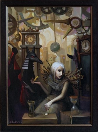 Maleriene til Igor Lazarev karakteriseres ofte som visuell litteratur. Ofte maler han bildeserier, som en slags malerisk suite eller syklus over et bestemt tema. Hans detaljrike, figurative men surrealistisk fabulerende bilder er ofte inspirerte av historie og myter eller litteratur. På mange måter er han en fabulerende mystiker med spesiell interesse for middelalderen og renessansen.