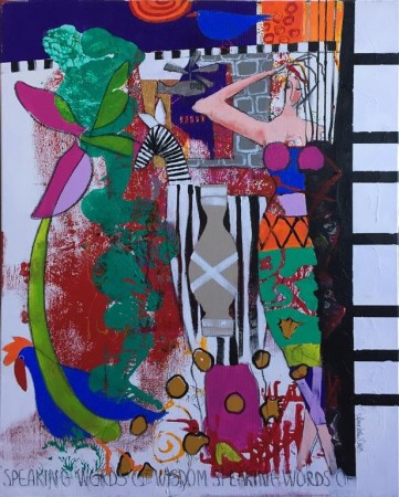 arbeider periodevis i ulike teknikker og kommenterer gjerne kultur, samfunn og verdensbegivenheter i kollasjer. Humor ligger ofte på lur, mer