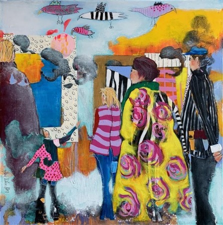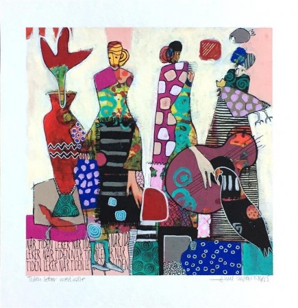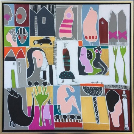 ”Hun leker seg med farger, mennesker og innlegg i kultur- og samfunnsdebatter. Store flater forteller noe om tid og mennesker. Underfundig