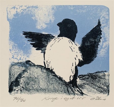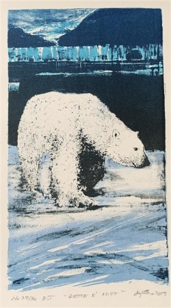 Etterkvart betyr nok vener og kammeratskap meir og meir. Ein kan tydeleg sjå at bildene er levde motiv. Ærlighet er det viktigaste og dette gjeld og i høgaste grad produksjonen. Eg lagar litografier i små opplag i mitt eige verksted – enten på Svalbard eller i Kristiansand. Og du vil aldri sjå at mine opplag oppstår i ”ny drakt” for teikningen bler slipt vekk fra steinen etter kvar farge.