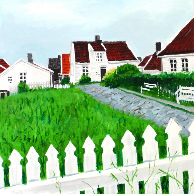 Anette har vært i Stavanger og hentet inspirasjon til sin fargerike billedverden. Hun greide å få ferdig 17 malerier til årets juleutstilling i Galleri Amare