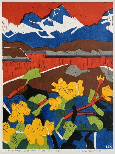 Lars Erik Karlsens  tresnitt  har et sterkt personlig uttrykk. Kunstneren bruker landskap og sjøfugler som utganspunkt for sine bilder. Tresnittene fungerer på to plan. På avstand er de figurative, men på nært hold kan de synes som fargerike, abstrakte komposisjoner.